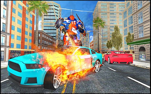 You are the driver of a transmute robot car. Transform your car into a flying robot like an airplane to defeat enemies and save the humanity and be the hero of the world. You also get the chance of shooting down opponent robot cars while flying high in the sky using robot sniper. Balance your moto robot in the robot battle and destroy the evil robots. This flying robot car is pretty simple, convert to moto robot and fight against other Robot cars.