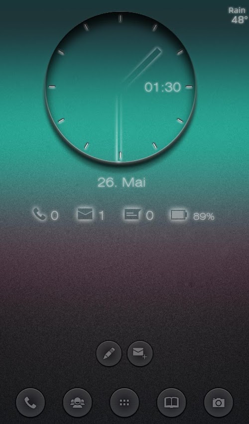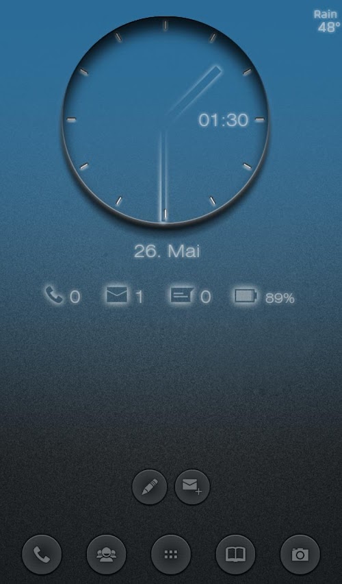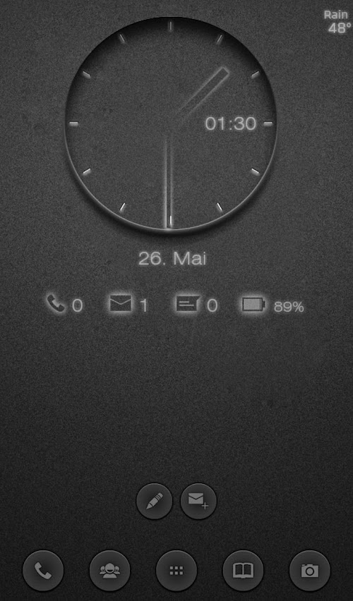 - below: shows date, incomming phone, gmail, sms and battery indicator