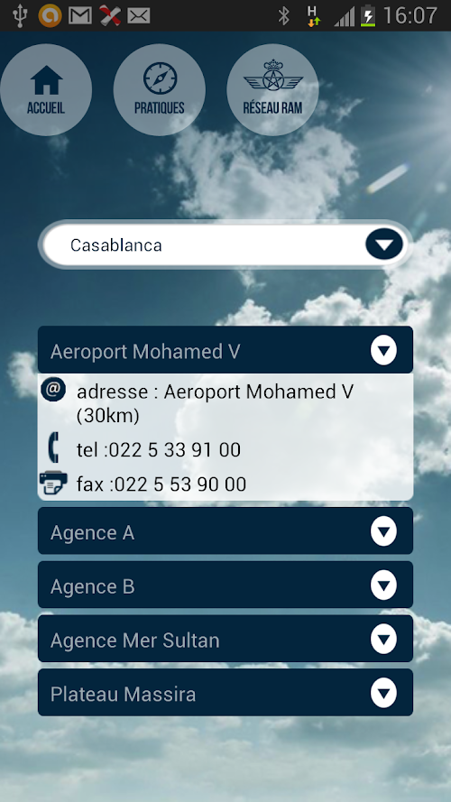 • Localisation des agences RAM avec leurs géo-localisations, affichage de l’itinéraire et la possibilité d’appeler.