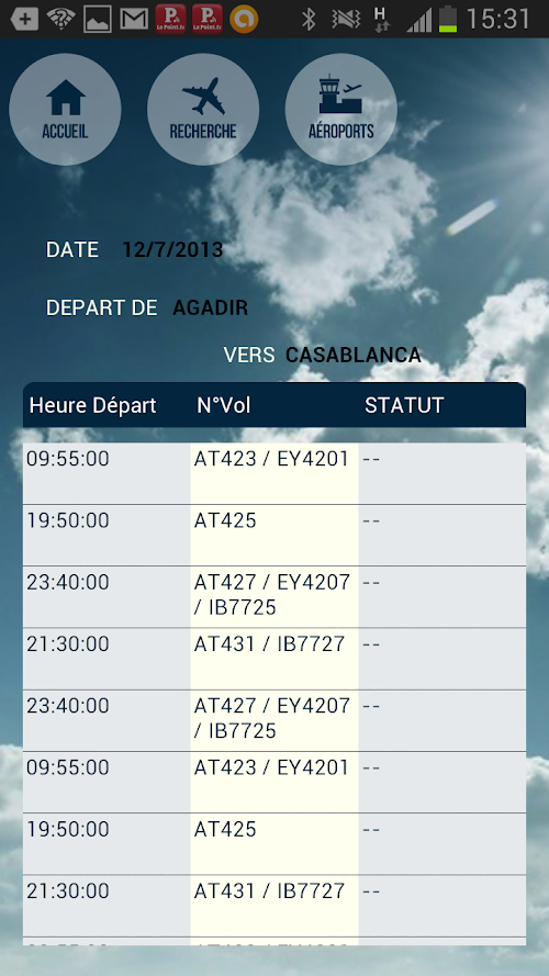 • La consultation en temps réel des horaires de vols (recherche par aéroport et par numéro de vols)