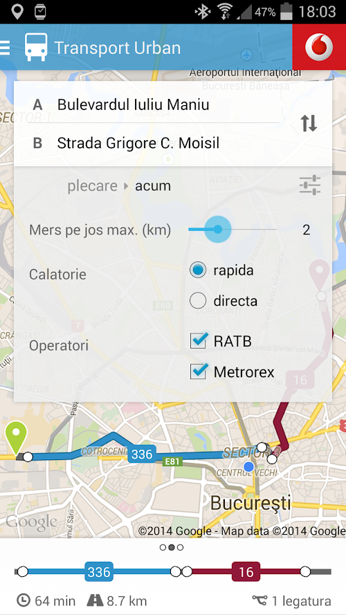 Note: Internet connection required - no offline mode (yet). To ensure fast and up to date results, route calculations are performed by our web server.