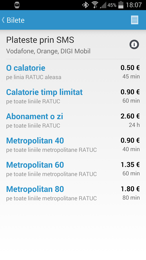 Available cities and transit agencies: Alba Iulia (STP), Brasov (RATBv), Bucharest (RATB & Metrorex), Cluj-Napoca (CTP), Constanta (RATC), Craiova (RAT), Iasi (RATP), Oradea (OTL), Ploiesti (TCE), Sibiu (TurSib), Timisoara (RATT)