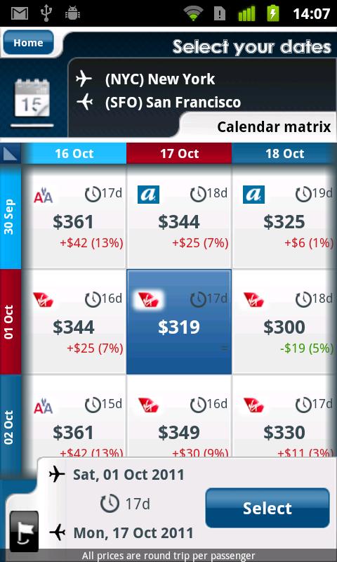 - Choose the best fare and date with a personal calendar/fare matrix (+/- 3 days)