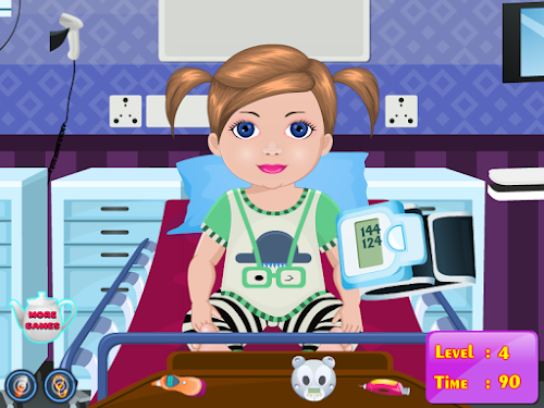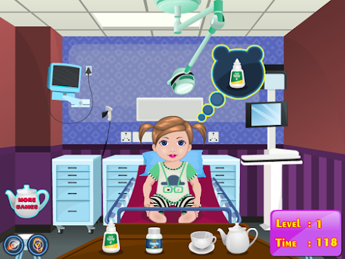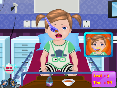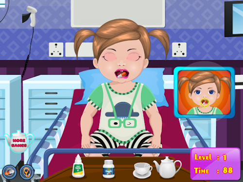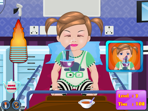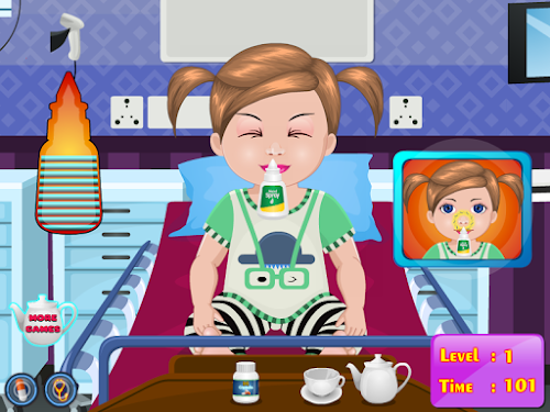 Tonight our friend Dina was been washing but the water was a bit cold and therefore Dina became ill. You have to necessarily go to a doctor because it is very sensitive to cold and do not want to get sick very much, because still have to go to school and not allowed to miss classes. You're the best baby doctor so you have to take care of little Dina. We need to manage less liquid in the nose to unclog it, you have to give a tablet for cold and hot cup of tea, so you can breathe better. Next you must brush them with a cream-inflammatory nose and giving him a teaspoon of syrup. Still need to check its temperature and weight to know what dose of medication to manage them. It seems that little has been done well Dina and got cold. Please try other games for girls in this series because this will teach you how to have care for babies or other children.