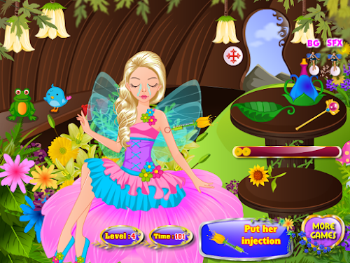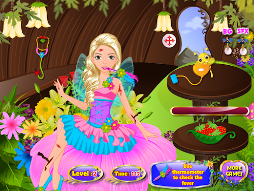On a beautiful day a fairy enjoying a summer day when suddenly fell ill and. Little mermaid wants to have the best doctor and treat very fast but unfortunately it can not because no one wants to come to this point. In this game you are the best doctor and have to help the little fairy and heal. For starters need to check its temperature, measure his heart rate and to an injection to heal much faster. Then you must thoroughly clean them hand and foot and only then bandaging them because it has a very ugly wound should be covered. The next level should he manage to cold syrup, to make them anti-inflammatory injection. Thank you for choosing this game and please try other games for girls in this category to see if you're doing as well as you did at the other neat games.