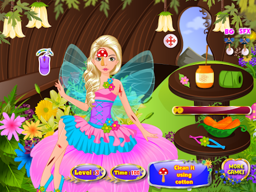 On a beautiful day a fairy enjoying a summer day when suddenly fell ill and. Little mermaid wants to have the best doctor and treat very fast but unfortunately it can not because no one wants to come to this point. In this game you are the best doctor and have to help the little fairy and heal. For starters need to check its temperature, measure his heart rate and to an injection to heal much faster. Then you must thoroughly clean them hand and foot and only then bandaging them because it has a very ugly wound should be covered. The next level should he manage to cold syrup, to make them anti-inflammatory injection. Thank you for choosing this game and please try other games for girls in this category to see if you're doing as well as you did at the other neat games.