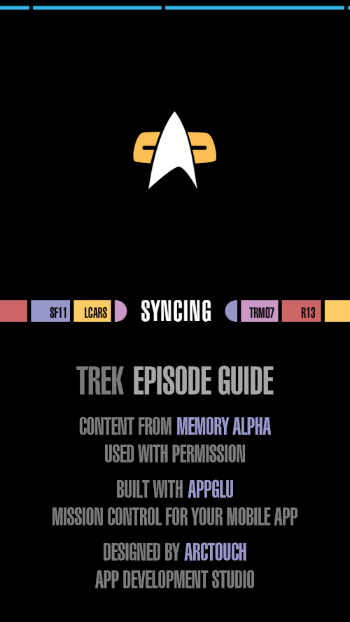 Content for the app comes from Memory Alpha, and is used with permission. See http://memory-alpha.org. All content is subject to licenses on their use, and is described on the Memory Alpha site.