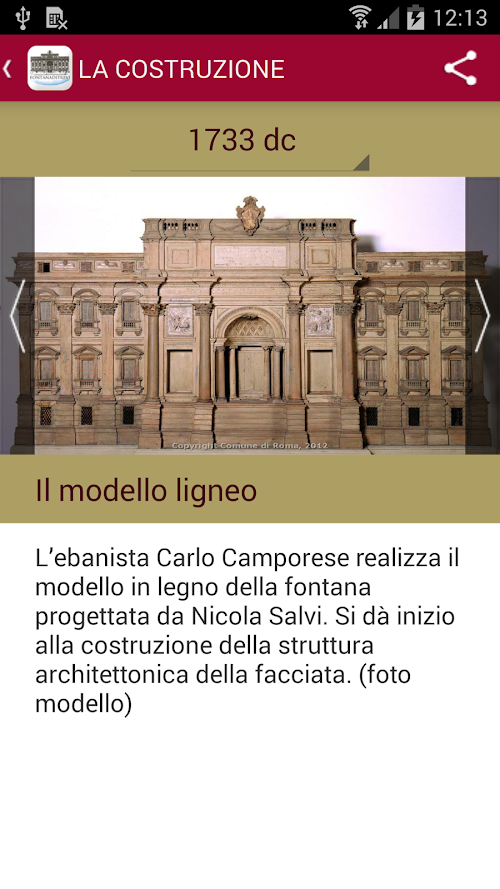 The app contains a thematic section that introduced the draft of Restoration of the Trevi Fountain, which will allow the public to follow the progress of works.