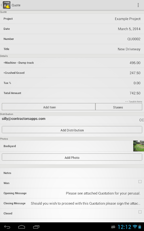 Quickly send and receive approval on quotes. Always have them with you on your phone for improved communication with your customers.