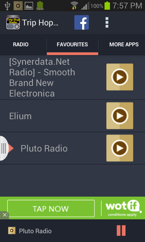 Trip Hop Music Radio is the best, free and personalized radio service that plays the best Trip Hop music you love. You can even customize and create your favorite radio station list. If you love Trip Hop music, you are in a treat. Install and run this app now, it won't disappoint you.