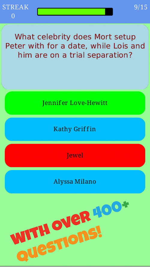 -With over 400+ questions and random difficulty levels, Trivia for Family Guy Fan Quiz is the latest trivia app on the store that brings up and tests your memory for the super loved Family Guy TV show.