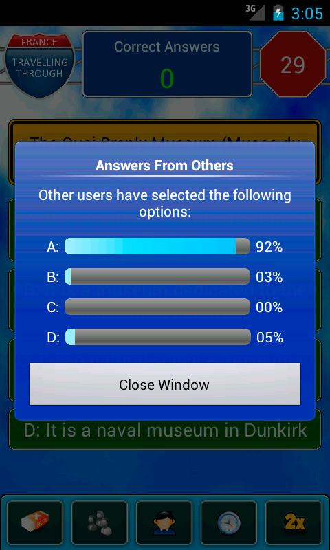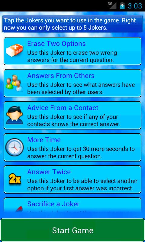 The game follows the same structure as "World Intelligence Contest" and "What's That Picture?", Our other famous and popular games with hundreds of thousands of users. All these trivia games follow the same structure, inspired in the famous show "Who Wants To Be A Millionaire?"