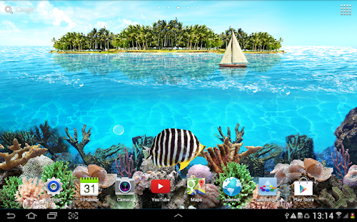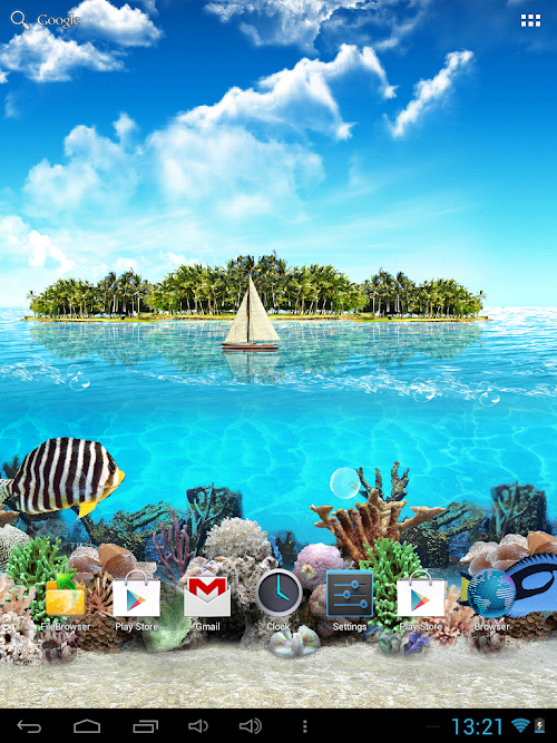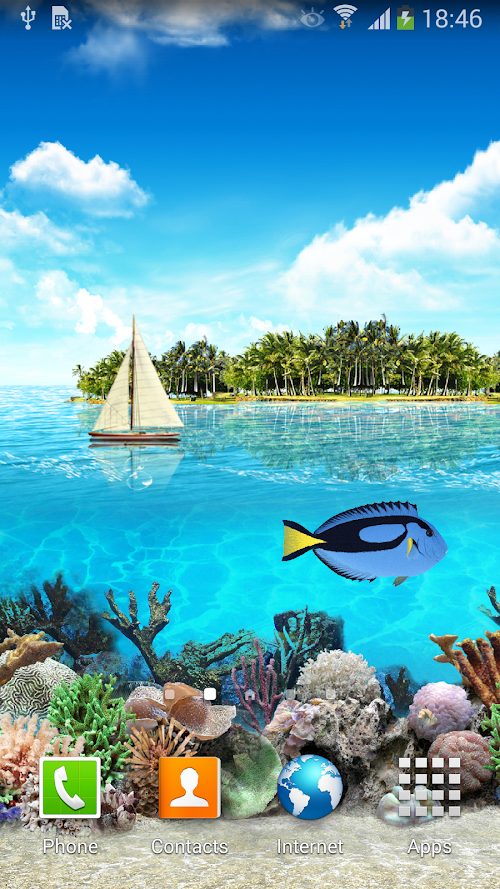 Azure live water, 3D exotic tropical fish, coral reefs and tropical island, all this you can find in Tropical Ocean Live Wallpaper. This application will look great on the screen of your Android phone and tablet. Feel the atmosphere of calm sunny day on the beach of your own tropical island in the shade of palm trees =)