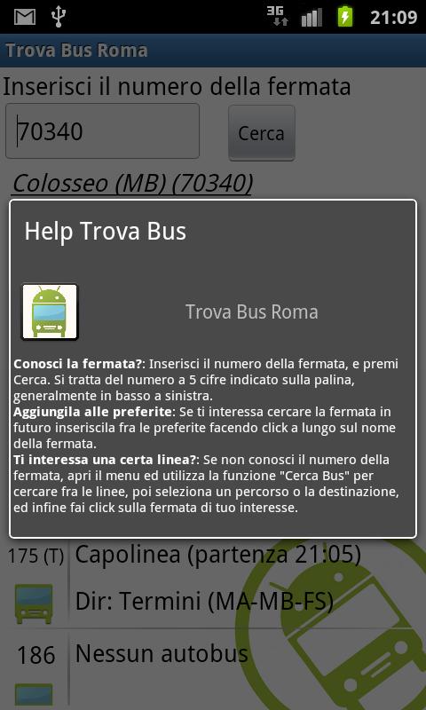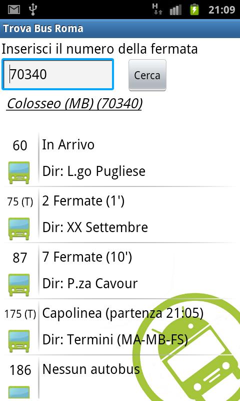 This application helps you find real time information on bus waiting times in Roma, Italy.