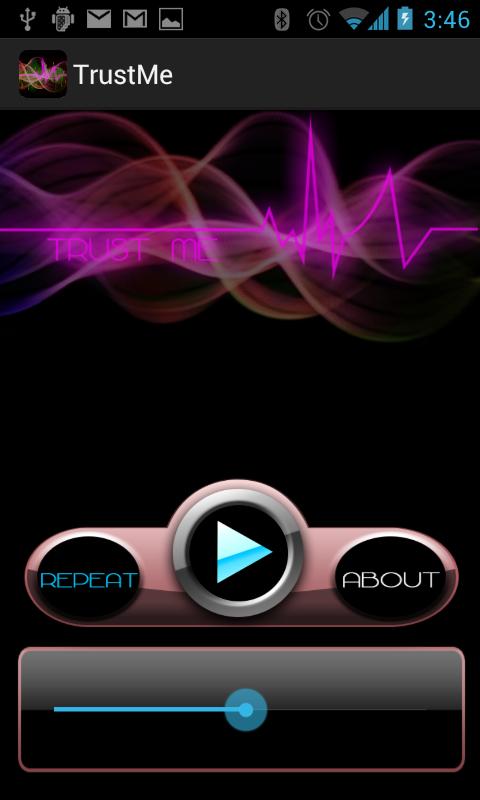 Trust Me is completely idiot proof to use. You just push play. If you want the app to work in the background without ever stopping, just push repeat. It doesn’t matter how loud or low your volume setting is. That’s it!