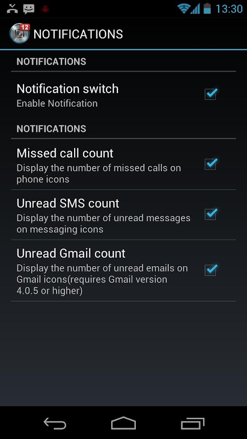 TSF Counter Plugin: it needs to install the TSF Shell; when the function is turned on it will show the number of unread sms/missed calls/new Gmail message ( 4.0.5 and above is required) on the relevant icons.
