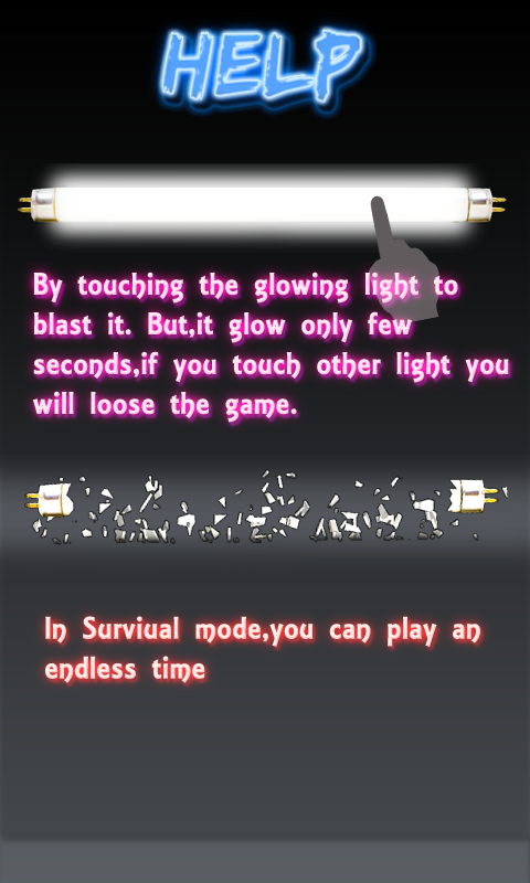 In this addictive game you have to blast by touching the screen when ever the tube light blinks then only touch to blast, for each blast you will get point and also save best time, for every wrong touch your game will be lose.