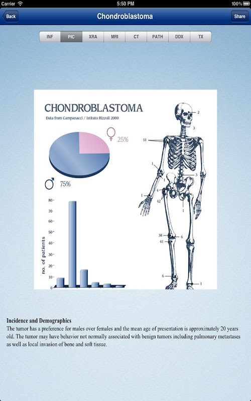 There is no textbook in print that has the information available in this application, presented in the manner that it is. It's a great tool for orthopedic surgeons, radiologists, pathologists, podiatrists, residents and students who might be caring for patients with these tumors.