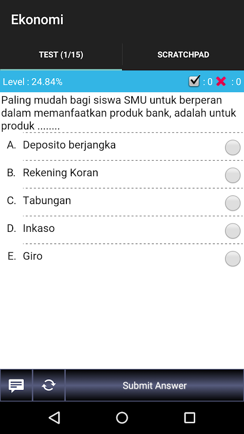 Setiap soal ada info tingkat kesulitan yang menunjukkan seberapa banyak orang bisa dan tidak bisa jawab soal itu.