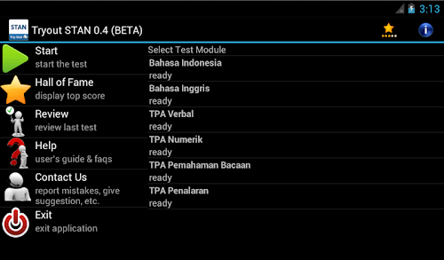 Device android sangat banyak dan kami hanya melakukan testing ke device terbatas. Tes dilakukan hanya di hape samsung (galaxy, note), htc, dan google nexus. Jika ada device tidak kompatibel, kami harus mencari 'pinjaman' device tersebut untuk memperbaikiTry-out USM STAN is an application for a national exam preparation USM STAN with a quick / easy / efficient (a bit of learning to be a high value).
