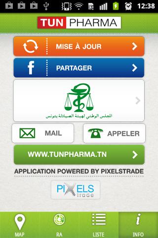 Note that TunPharma does not connect to any server, only the GPS function is activated to make it operative. No need to panic if you need a pharmacy in an emergency, simply download and view TunPharma!
