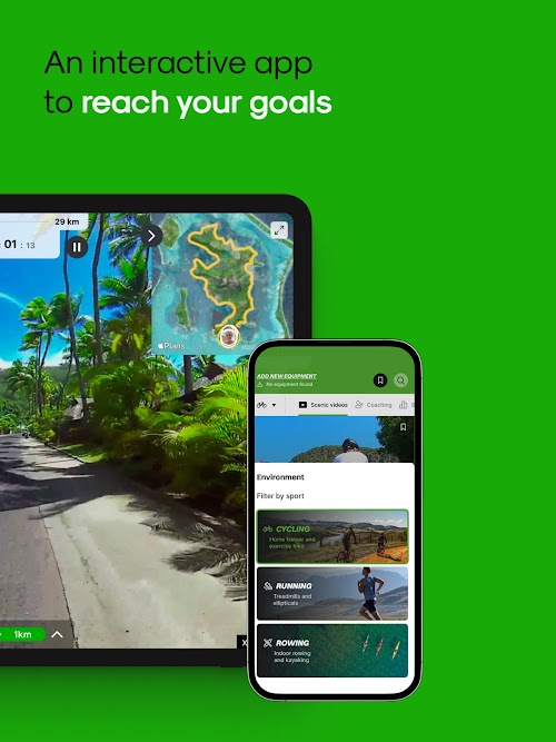 Ride, run and row around the world with thousands of real outdoor content. Enjoy a free version with 15 videos or purchase a subscription (€ 9,99 p/m) to unlock all content.