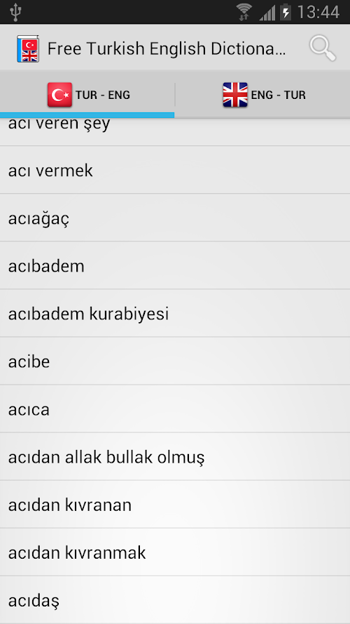 You are downloading an absolutely free Turkish - English Dictionary (Türk - İngilizce sözlük), this is an offline dictionary which does not need Internet connection to work.