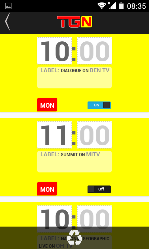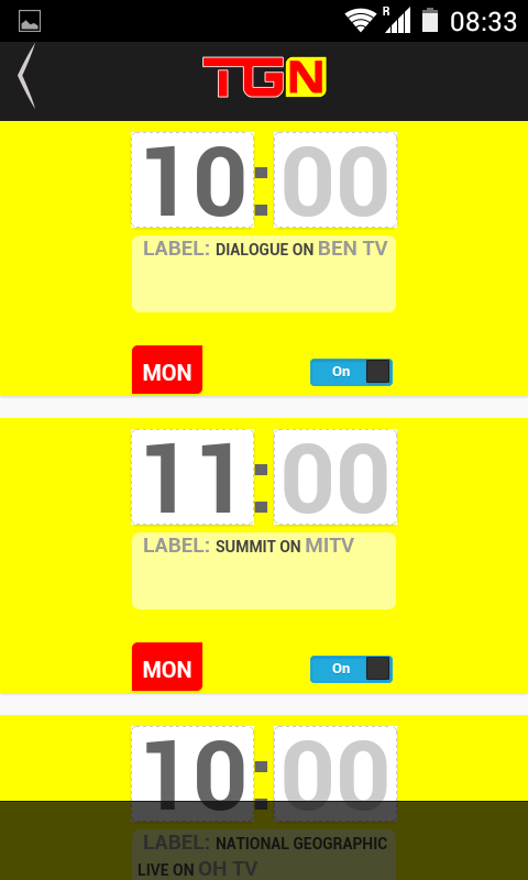 Our TV Guide is in grid format and you can set reminder for any upcoming TV/Radio programmes.