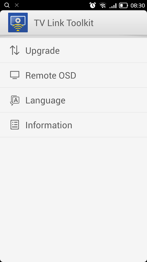 Information TV Link Toolkit is the official application for setting ALCATEL ONE TOUCH Home V102. You can upgrade the firmware and change the system language for V102.