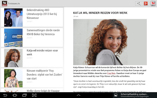 In the app include news can be found on NOS, RTL, SBS, GTST, Feuten, Spangas, Netherlands Heart, Show News, RTL Boulevard, Ziggo, UPC, the journal and Movie1