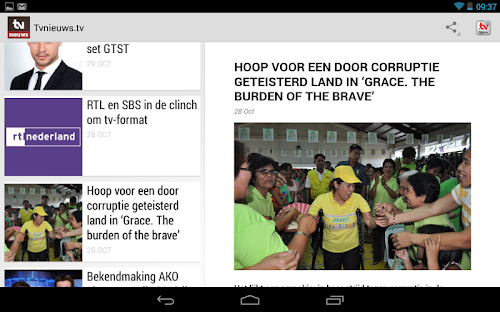 In the app include news can be found on NOS, RTL, SBS, GTST, Feuten, Spangas, Netherlands Heart, Show News, RTL Boulevard, Ziggo, UPC, the journal and Movie1