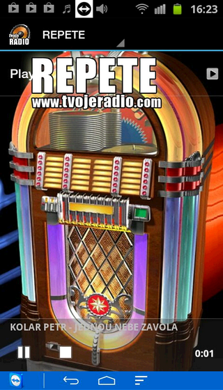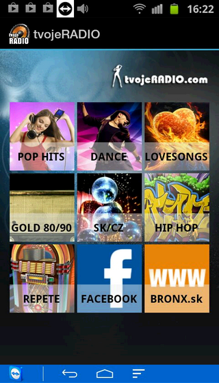 Nalaď si tvojeRADIO.com a vyber si pesničku, ktorú chceš počuť. POPHITS, LOVESONGS, SK/CZ, GOLD 80/90, REPETE, DANCE, MILLENIUM, RADIO WOW, alebo HIP-HOP sú hudobné kanály tvojeRADIO.com. Vyberaj pesničky a hraj si na želanie, čo sa Ti páči. www.tvojeradio.comTune your tvojeRADIO.com Choose a song you want to hear. PopHits, Lovesongs, SK / CZ, GOLD 80/90, REPETE, dance, MILLENIUM, Radio WOW, or HIP-HOP music channels are tvojeRADIO.com. Chose differently and play songs on demand, what you like. www.tvojeradio.com