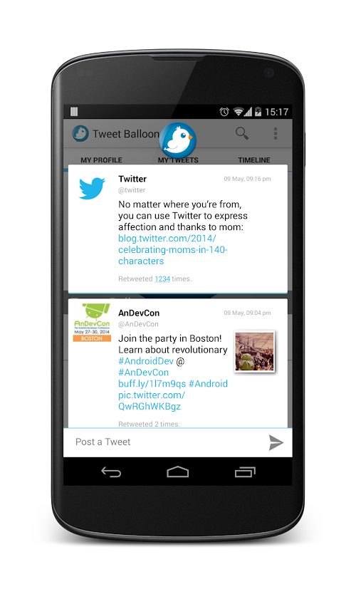 You can Post Tweets with revolutionary way; post tweet with "Balloon" while playing a game or watching a movie.
