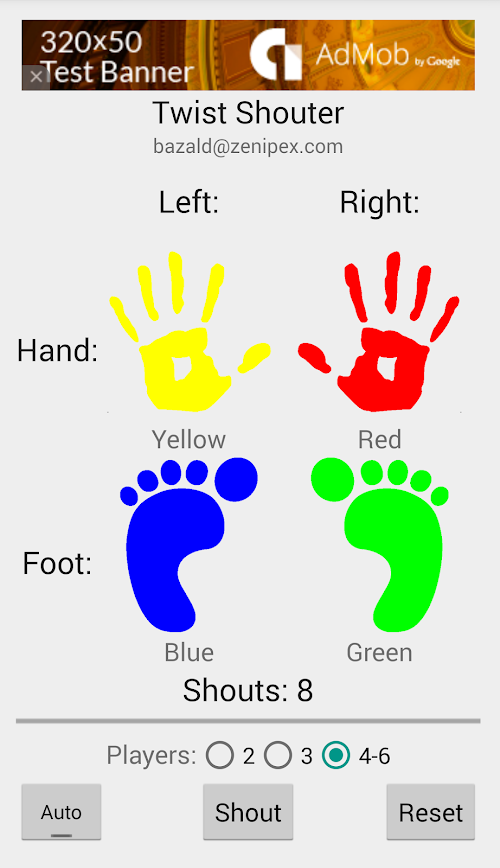Twist Shouter provides an unofficial spinner replacement for Twister by Hasbro. Twister is a game of physical skill and quick thinking. When Twist Shouter calls out a hand or foot placement, all players must rush to put the right body part down on the appropriate color as quickly as possible.