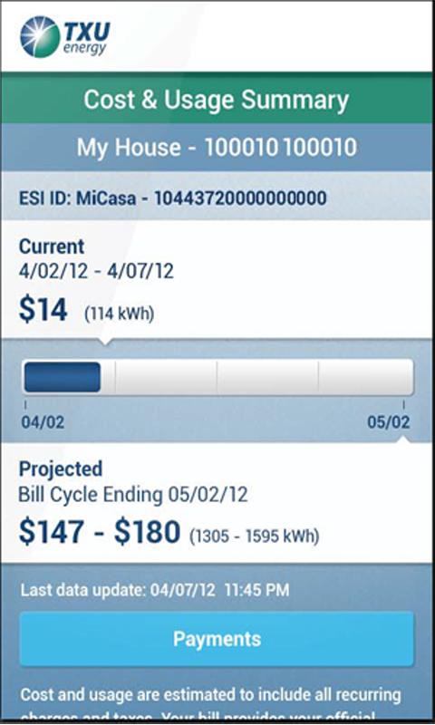 Get quick and easy access to your TXU Energy electricity account from anywhere, view your bill, make payments, check your monthly and projected usage, view billing and payment history and update your profile settings when it’s convenient for you. Plus you can control your Brighten® iThermostat, the exclusive thermostat from TXU Energy. This thermostat is available to current TXU Energy customers. Just download the free app and use your TXU Energy MyAccount login and password. For additional information about features please visit txu.com/mobileappsupport.