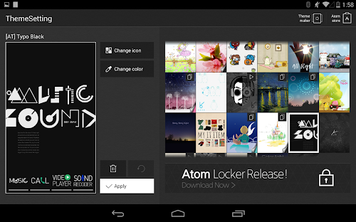 Modern and simple style Atom Launcher theme, covers icons, wallpaper, folders interface and app drawer.