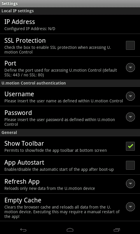 This version of U.motion Control Android App comes with one universal variant which will work on all the Android devices.