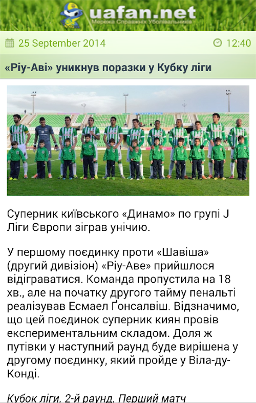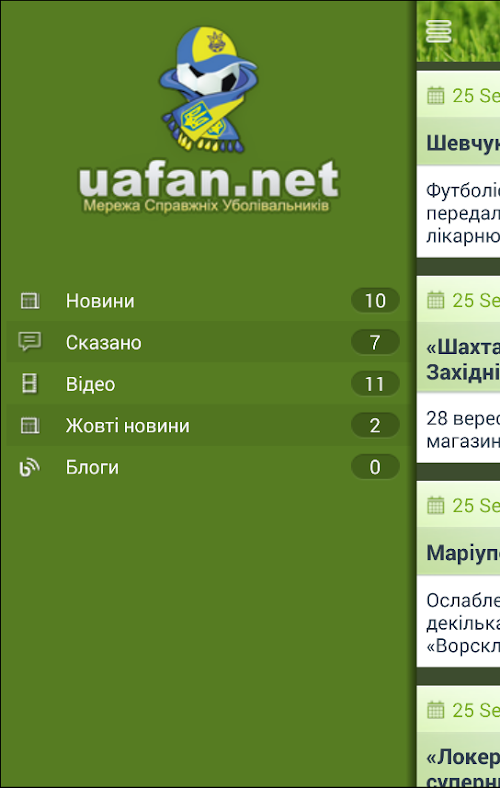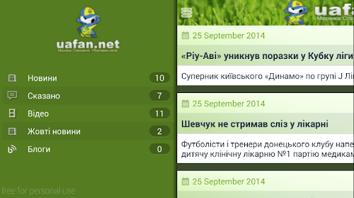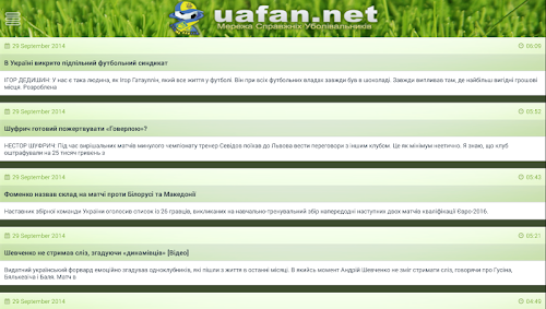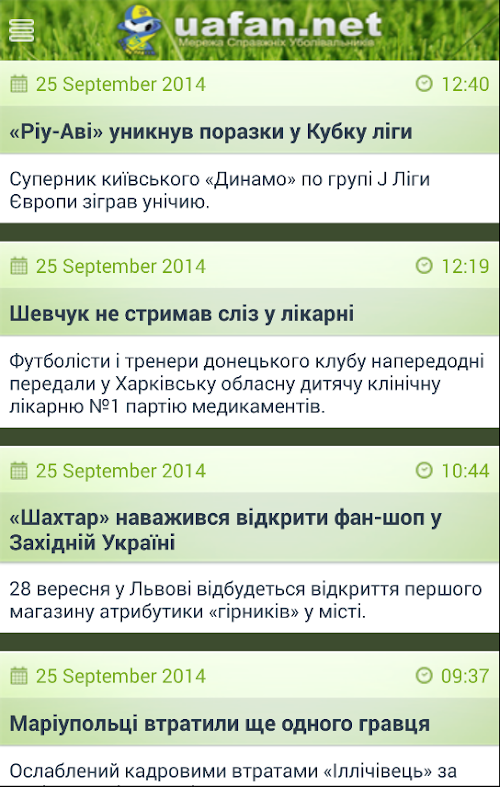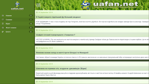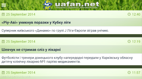 The most interesting news from the popular site of Ukrainian fans UAFAN.net are now available in application for Android. UAFAN News is all the best of Ukrainian and international football, and other sports. Downloading our free application you will get instant news about teams and players, rumours and predictions, unexpected incidents, amazing photos and videos of goal and tricks.
