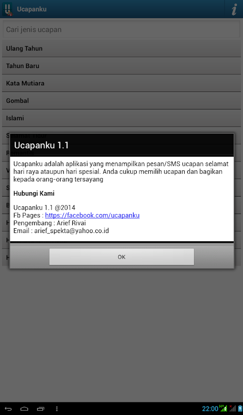 "Ucapanku" is an application that displays a message / SMS greeting happy holidays or special days. You simply choose a greeting and share with the people dearest.