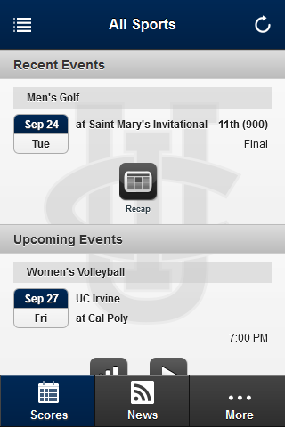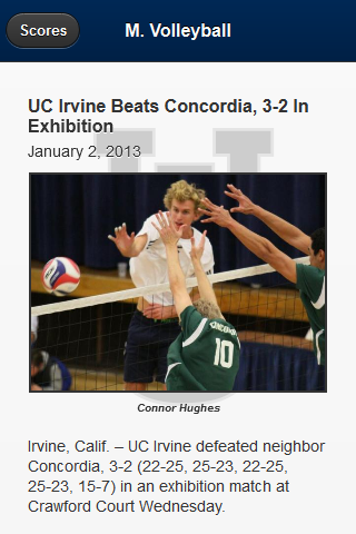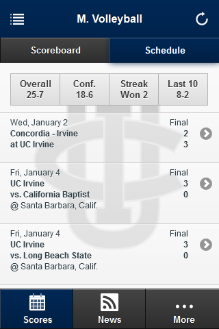 Created by PrestoSports in partnership with the University of California at Irvine, Front Row gives fans access to score updates, statistics and game recaps.