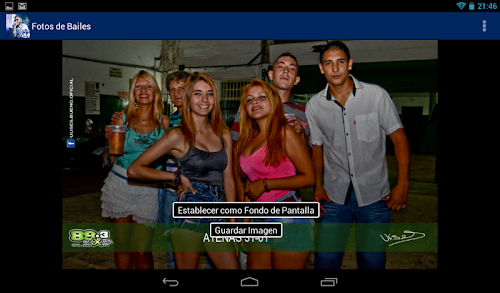 - Ver las fotos de los bailes de la semana. También podrás ponerlas como fondo de pantalla o guardarlas en tu memoria.