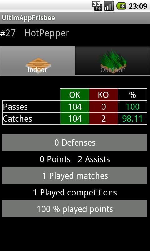 Each player has two statistics tabs, for indoor and outdoor, including: