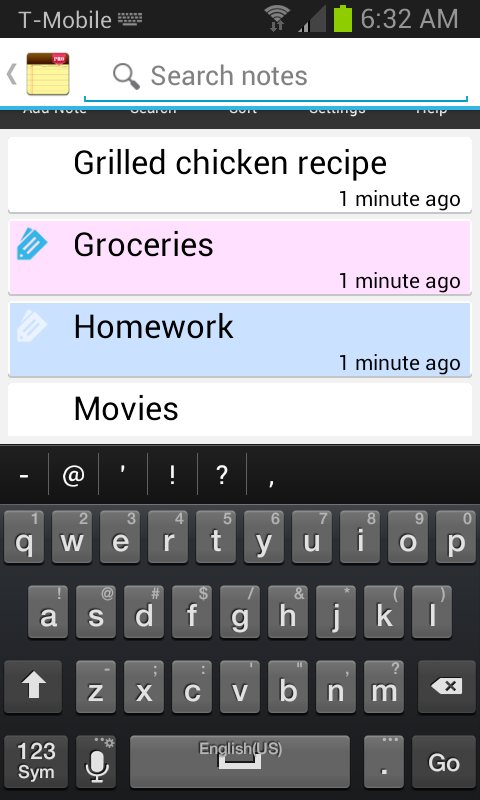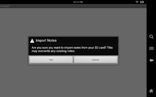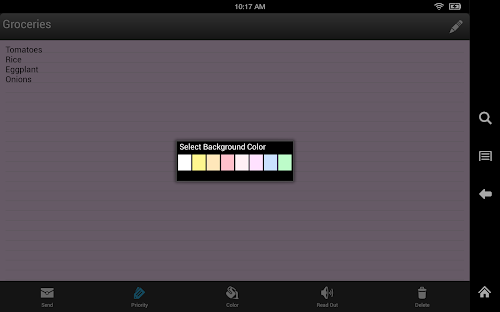 This lightweight Notepad application serves all your note taking needs by providing a crisp user interface, the ability to search notes, prioritization, dictation, color-coding and capability to back-up and restore notes through import/export via SD Card.