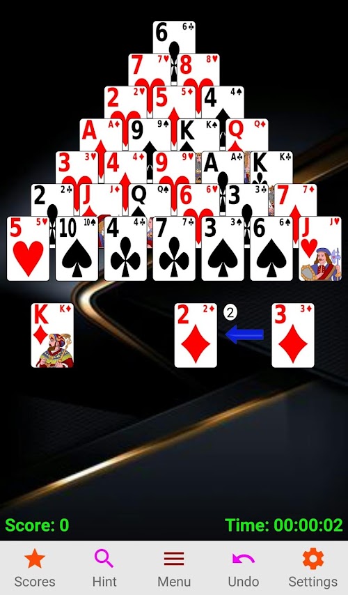 This game has an undo function to take back up to 20 card movements. A hint function shows you up to 3 possible card movements at once.