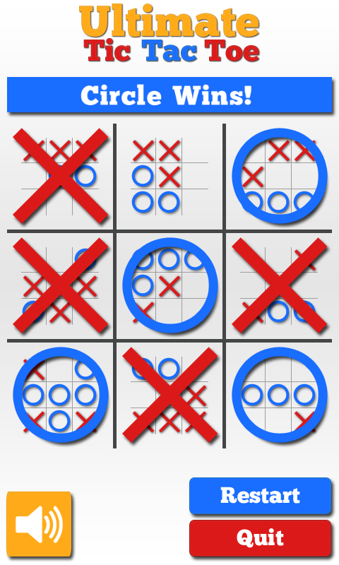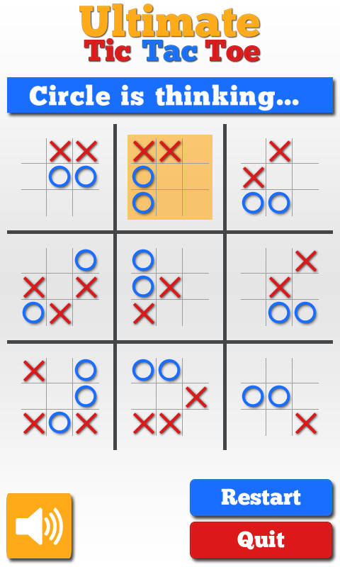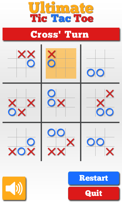 Ultimate Tic Tac Toe is an advanced version of the classic Tic Tac Toe Game. The goal is simple, get three in a row to win the game.
