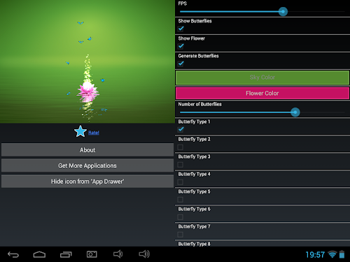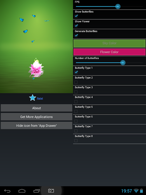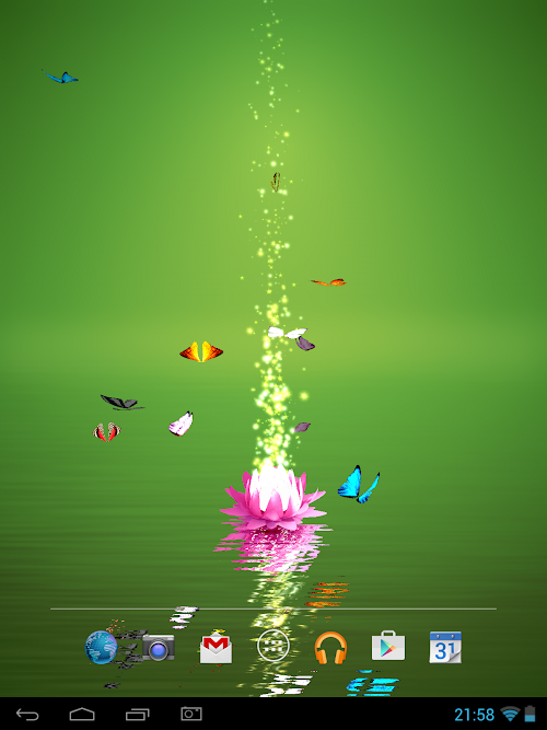 If you want relax and concentrate on your thoughts - butterfly live wallpaper it’s definitely what you need! Just look at the desktop of your smartphone or tablet: stillness of water surface, joyful butterflies dancing around a gorgeous flower… Try to inhale as deep as you can… slowly exhale… can you feel it? – light summer breeze on your face, the smell of fresh water after the rain… Now then, don’t be shy - download live wallpapers right now and you will never regret about!