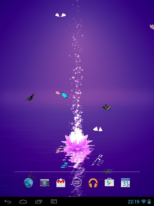We present our “Butterfly live wallpaper” which will bring you to the beautiful scene of the lotus flower in the calm water. There are many amazing butterflies came to compete in the beauty contest and mesmerize you with their magnificent natural dance. Behold nature’s heavens in this live wallpaper for android - never 3d graphic was felt so real on your device! And that’s not all of it: just try to touch the screen and you will generate sparks which will attract even more of these majestic bugs.