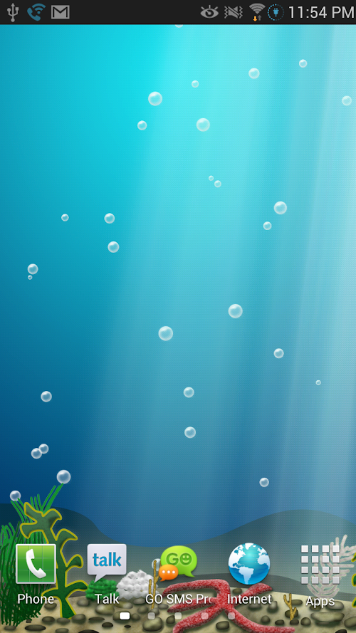 The Aqua Balls Undersea Ocean Floor Live Wallpaper brings the menu screen of the Aqua Balls game to your wallpaper! This sea floor vista adds beautiful underwater light rays to your home screen, fading in and out with bubbles floating upwards from the sea floor. This live wallpaper will track and scroll from screen to screen on devices that support that feature (some versions of Galaxy S3 and Note do not without upgrading the launcher application).