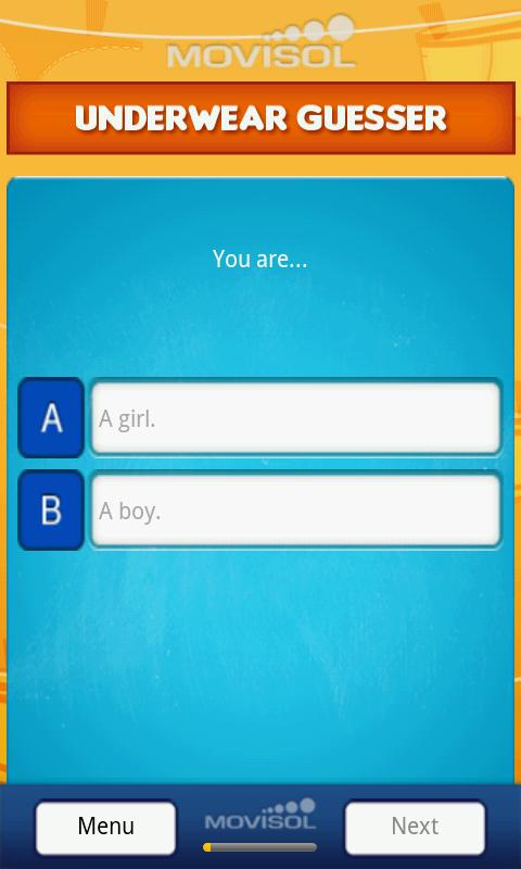 This version of UNDERWEAR GUESSER Android App comes with one universal variant which will work on all the Android devices.