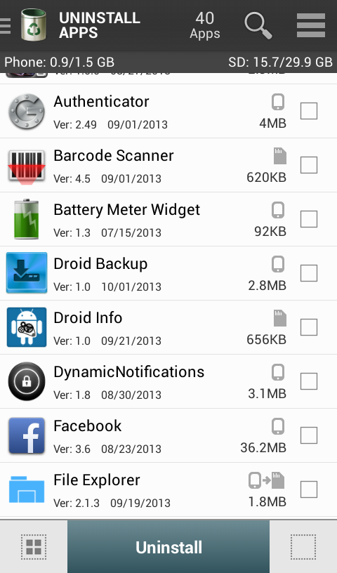 → Single/Batch Mode: Switch between single mode, where you can uninstall apps by single tap or batch mode to uninstall more than one app at the same time.